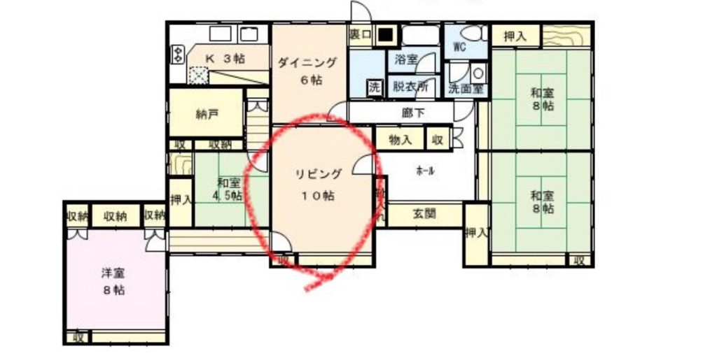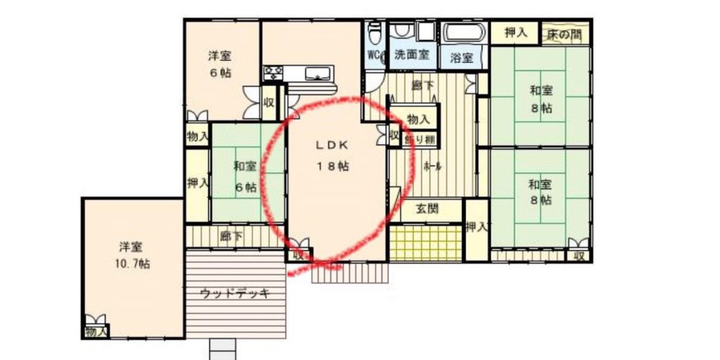 リビング10帖のお部屋をダイニングとの壁をなくし、LDK18帖と生まれ変わらせました。