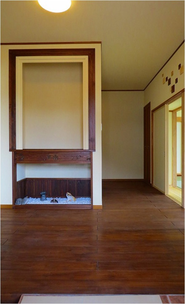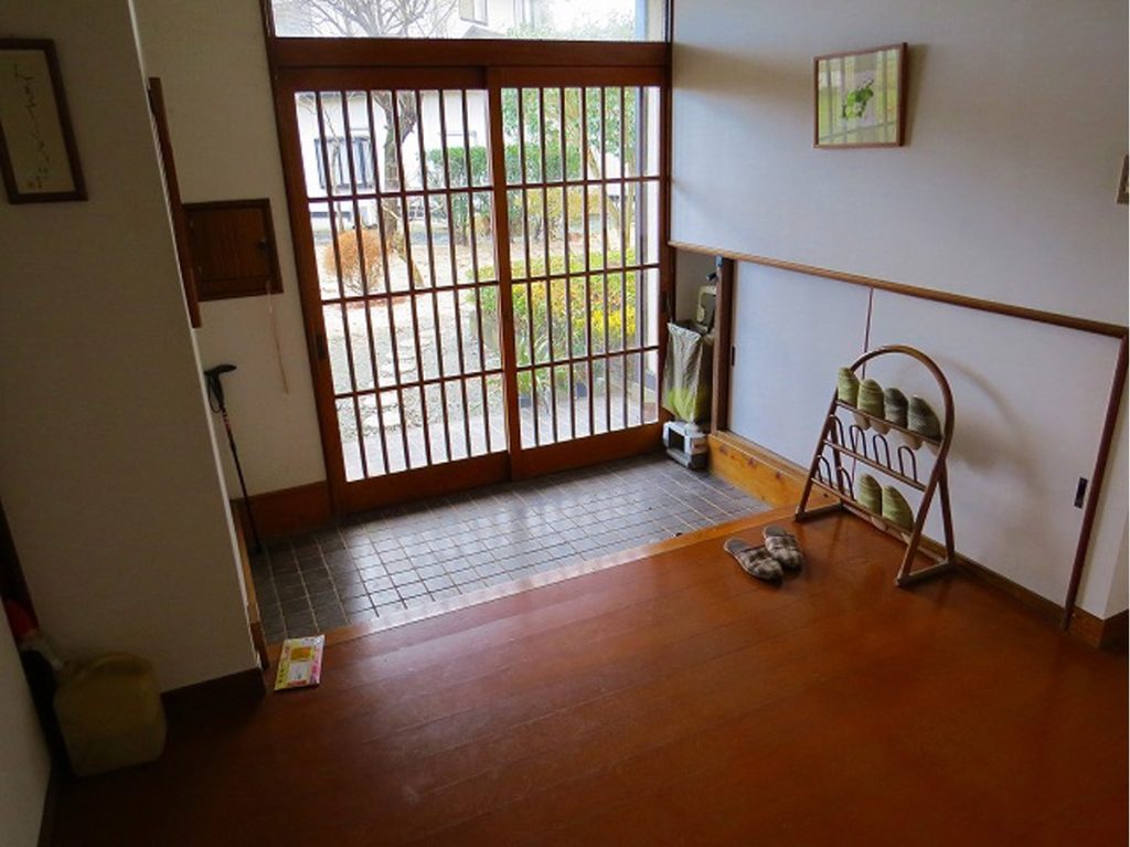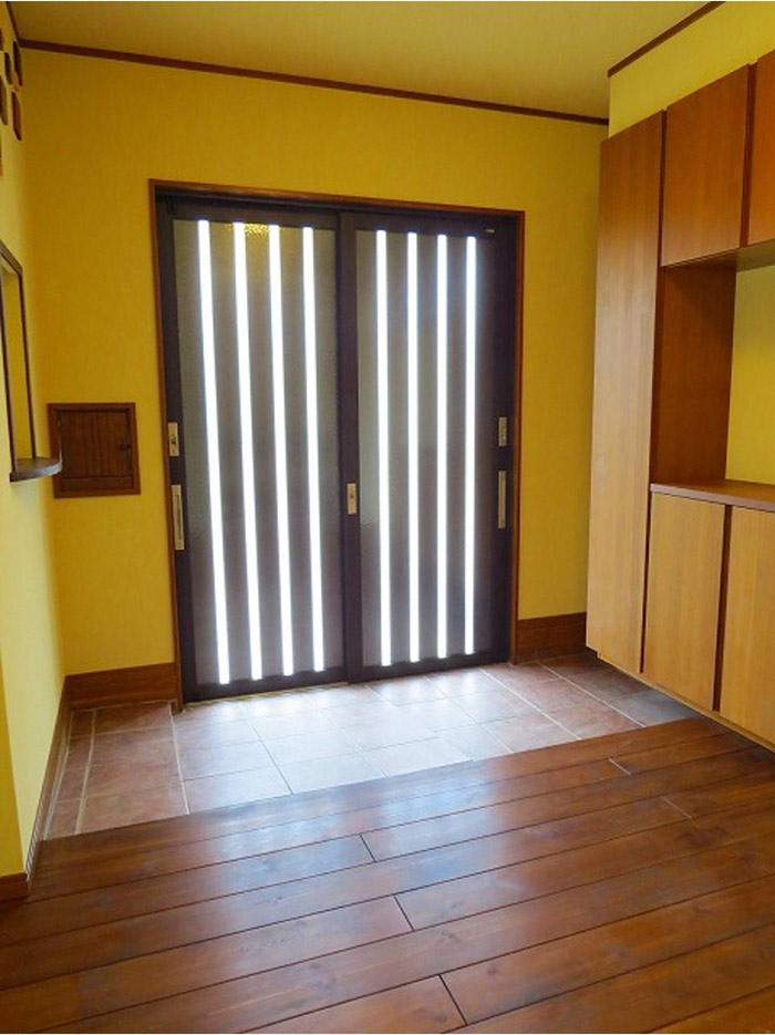 ポイント 玄関にスロープを作る事により、バリアフリー化させました。床板は無垢材、赤松・桐・ヒバ・タモと適材適所で使用しております。 無垢材の暖かさを生かしてリフォームしています。 施工前 段差のあるリフォーム前の玄関 施工後 玄関からの床材に傾斜を持たせ、段差をなくしました。