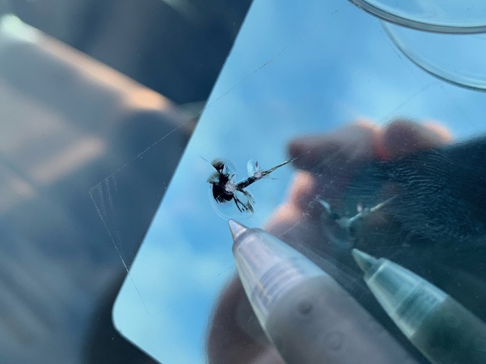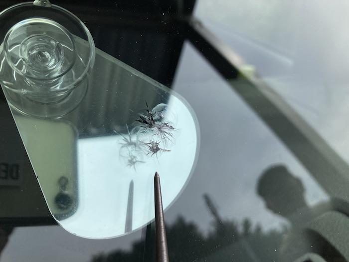 フロントガラスに飛び石等で出来た小さなヒビで、量販店様や他店様に断られたヒビも当店では直せる技術があります!