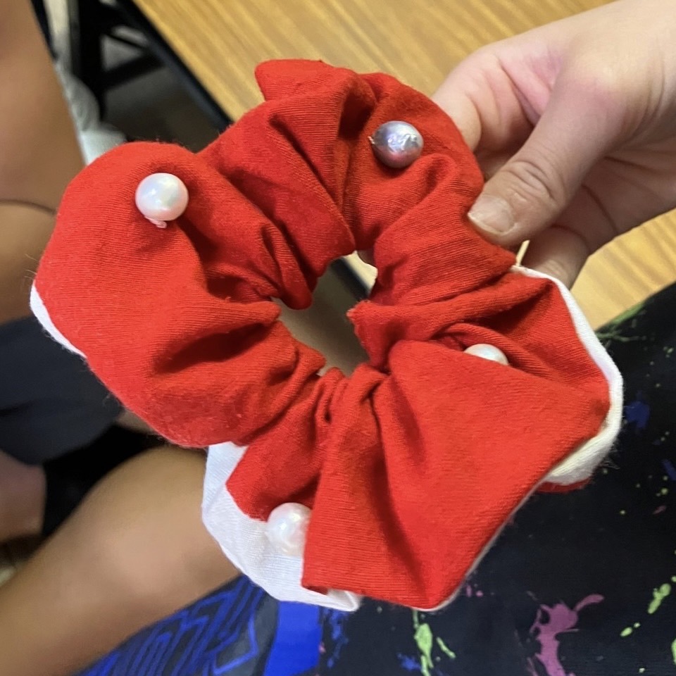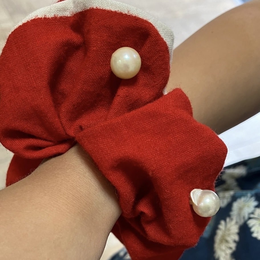 制作後の端切れを利用して作ったシュシュにも✨✨