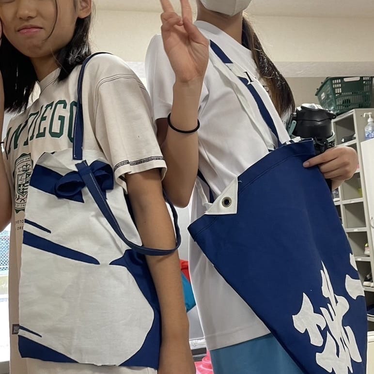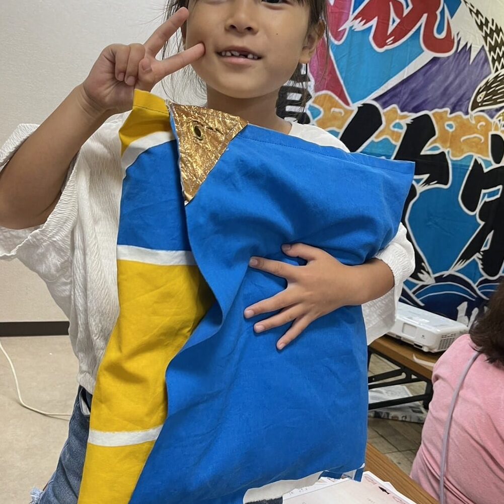 大漁旗リサイクルもテキパキと手伝ってくれて低学年の女子のシュシュ作りに部活で日焼けした逞しい高校生のお兄さんが真剣に手伝っている姿は微笑ましかったです。