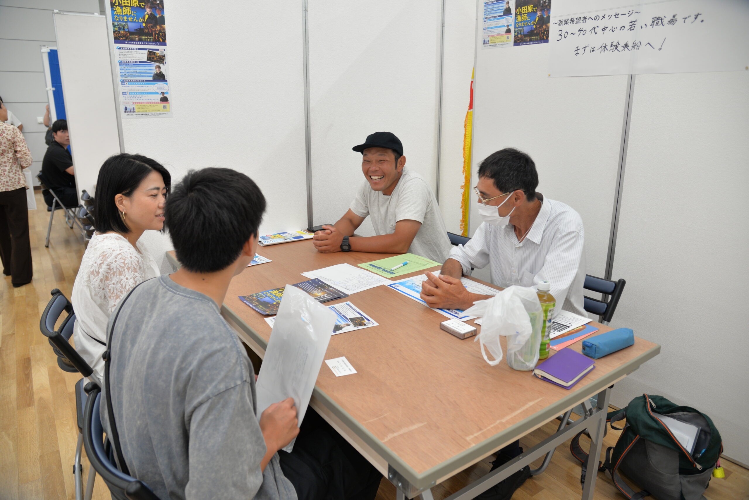 午後からは2部屋に分かれ水産高校生は今後の就職に向け漁業会社の話を聞く漁業ガイダンス、中学生や普通高校の方は漁師を知る授業として