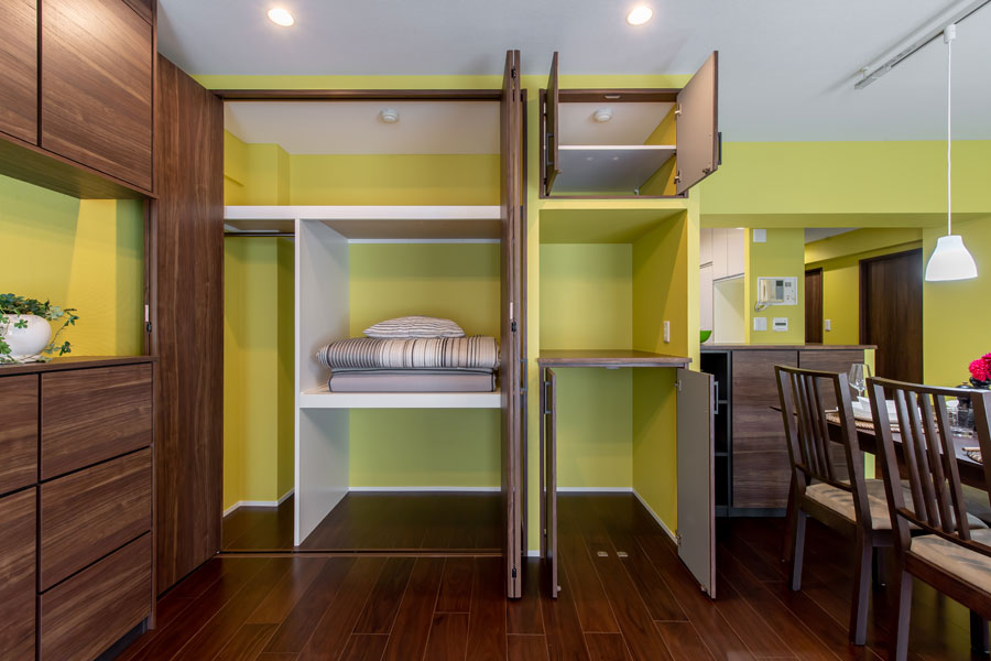 部屋が散らからないよう、部屋ごとに収納スペースを造作しました。